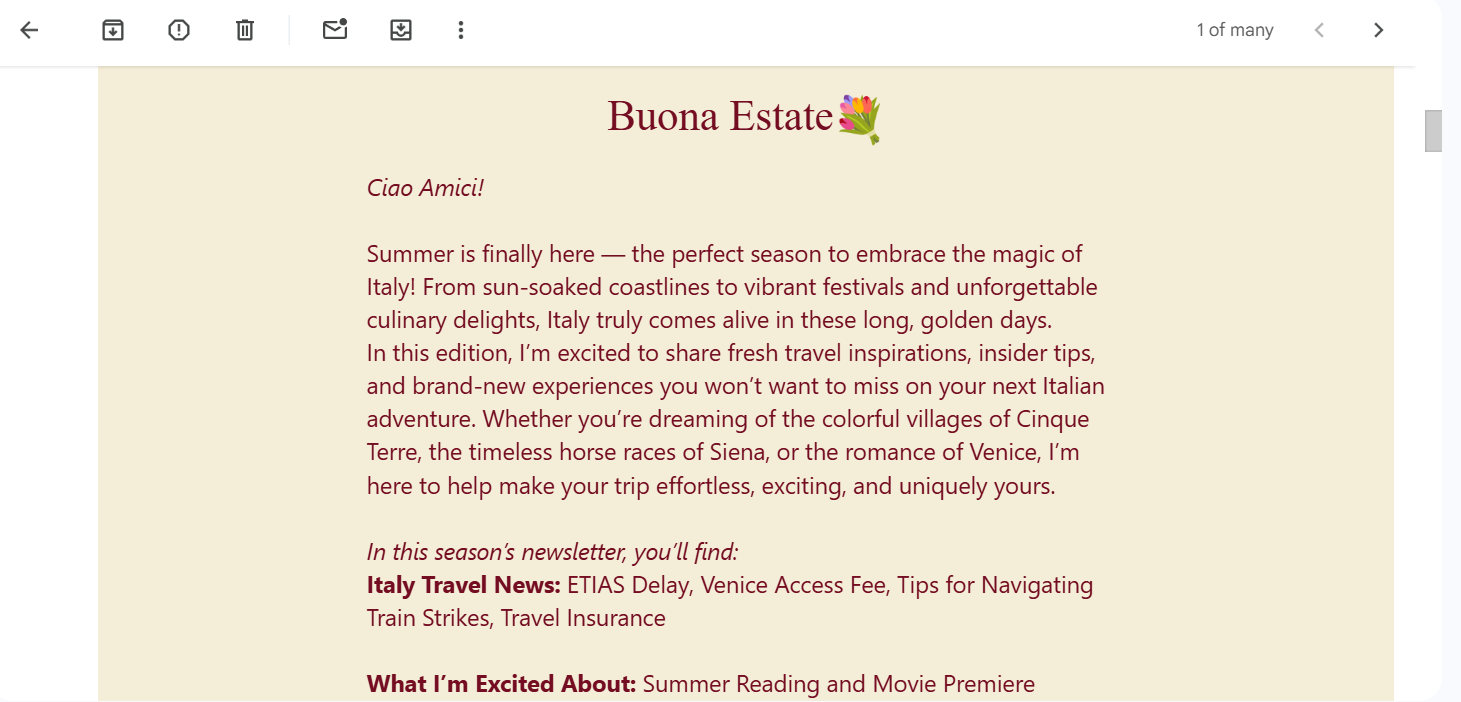 It’s like catching up with a friend—one who’s always dreaming of Italy. 💌 Sign up now!